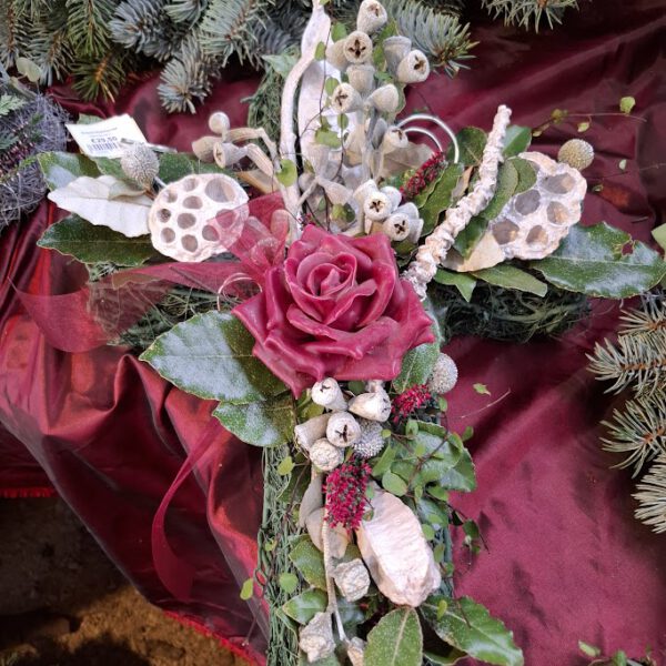 Gerne machen wir auch ein Gesteck auf Anfrage: zugeschnitten auf Ihre Wünsche